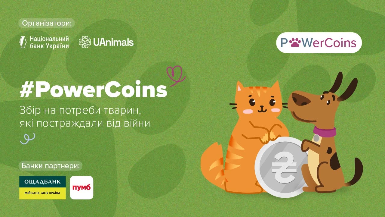 Національний банк України та UAnimals розпочинають проведення щорічної благодійної акції зі збору монет "#PowerCoins" для допомоги тваринам, які постраждали від війни.
